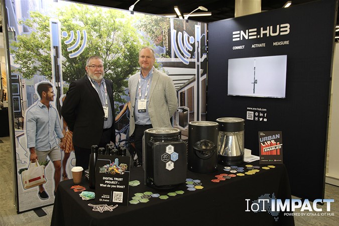 The team from digital infrastructure company ENE.HUB. The company's Head of Digital Urbanism, Adam Beck, moderated a panel discussion at IoT Impact about digital trust with Susan Skuodas, Director, Place Management, Sydney Olympic Park Authority, and Emily Rucker, Director Smart Places Policy and Engagement, Transport for NSW, in which they discussed the pilot digital transparency program at Sydney Olympic Park.