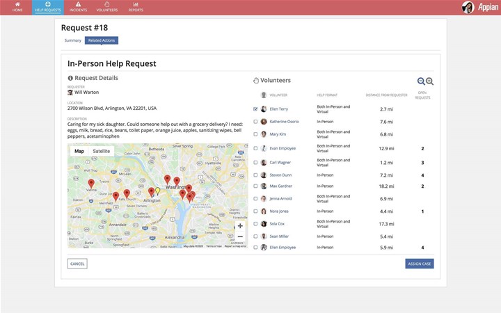 Interestingly, Appian is using its tool within its own business to connect employees who have volunteered to help colleagues in need. These volunteers might deliver groceries, offer a ride, help at home or make virtual social connections.